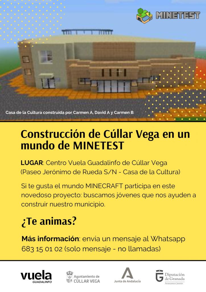 Si te gusta #Minecraft este es tu proyecto: buscamos jóvenes que nos ayuden a construir el municipio de Cúllar Vega en un mundo único en Minetest, en el Centro Vuela Guadalinfo.