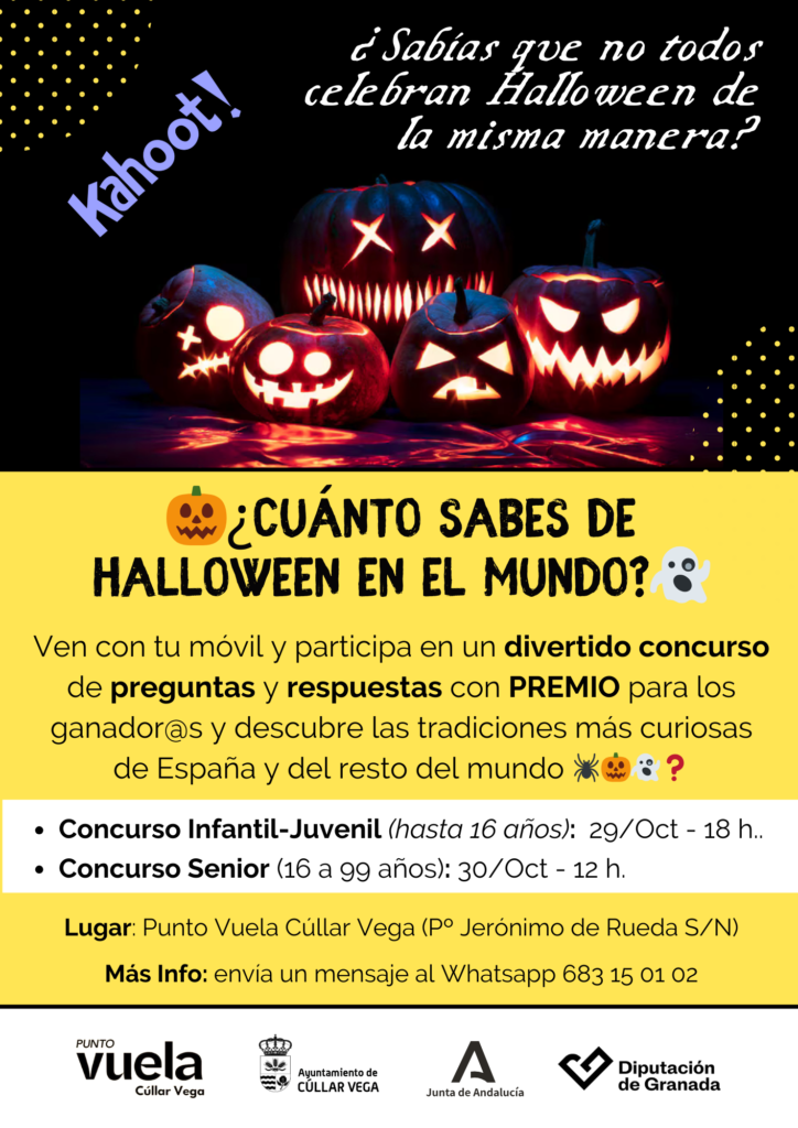 Los días 29 y 30 de octubre tendremos un Concurso de preguntas y respuestas sobre las celebraciones de Halloween en el mundo que tendréis que responder con vuestro móvil.